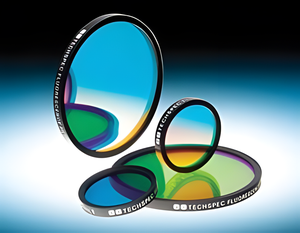 Edmund提供一系列二向色滤光片,包括45°反射式二向色彩色滤光片,它能反射一种颜色,同时透射所有其他可见波长的光;还有为可见光或近红外(NIR)设计的二向色短波通滤光片和二向色长波通滤光片;以及在常见荧光团发射波长处具有截止波长的荧光二向色滤光片。